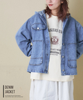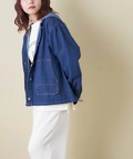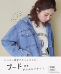 【春新作8%分ポイントバック】デニム × ヒッコリー フード付 ジャケット