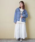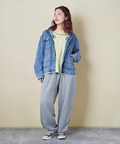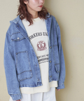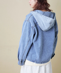 デニムのラフさに、ヒッコリー柄フードを組み合わせた遊び心のある一枚。