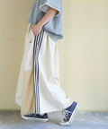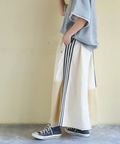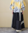 【春新作ポイント2倍(2/10まで)】ナイロン × ジャージー ライン ギャザースカート