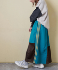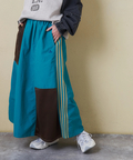関連キーワード: ナイロンギャザースカート ラインデザイン 切替 異素材ミックス ロングスカート スポーティ 大人カジュアル エイジレス