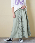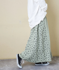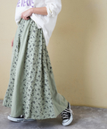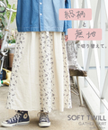 【春新作8%分ポイントバック】ソフトツイル 総柄 プリント 切替 ギャザースカート