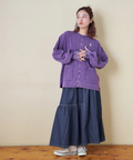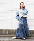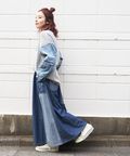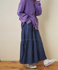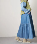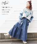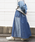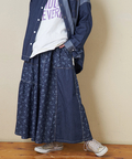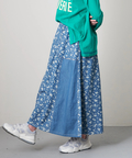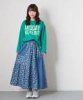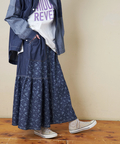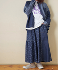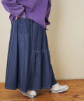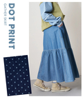 ■抜染プリントで表情を楽しむ。ライトデニムギャザースカート