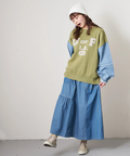 無地と柄を組み合わせた切替デザインで、甘くなりすぎず大人カジュアルな印象に。