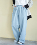 【春新作】ヒッコリー ワイドパンツ