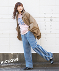 ヒッコリーならではの縦ストライプが印象に残るワイドパンツ。