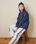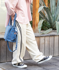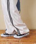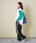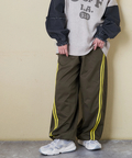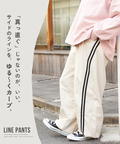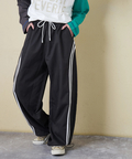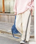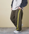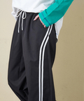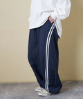 スポーティな配色ラインを、ゆるやかなカーブシルエットに落とし込んだイージーパンツ。