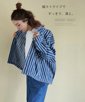 【春新作】ヒッコリー ノーカラー バルーン ジャケット