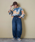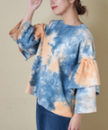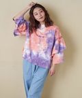 【春新作ポイント2倍(2/10まで)】16/-OE天竺 タイダイ フリルスリーブ プルオーバー