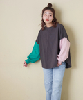 ■後ろ姿に遊び心を。明るいプリントが映えるゆったりドルマン×パフスリーブプルオーバー