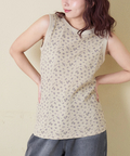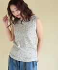 【春新作】ワッフル 小花柄 プリント タンクトップ