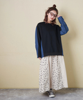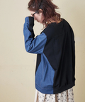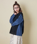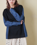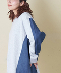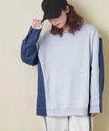 【春新作8%分ポイントバック】デニム × スウェット 切替 プルオーバー