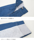 切替部分には程よい厚みのデニムを合わせ、異素材ならではのコントラストを楽しめます。