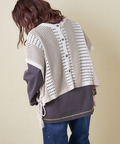 後ろにすれば、落ち着いた印象のボーダー柄プルオーバーとして、1枚で全く異なる表情を楽しめます。