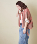 ボタンを前にすれば、縦ラインを強調するストライプ柄のジレや羽織りとして。