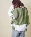 麻のようなシャリっとした風合いが心地よい、軽やかなニットケープベスト。
