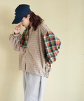 ■チェックを重ねて、わたしらしく。先染めチェック組合せバルーンシャツ