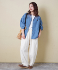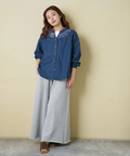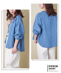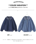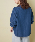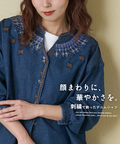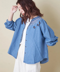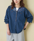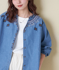 【春新作】デニム 刺繍 スタンドカラー シャツ