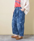 【春新作】デニム プリント イージーパンツ