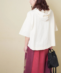 太めのフード紐や、裾の裁ち切りデザインなど、