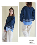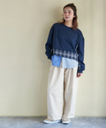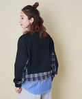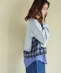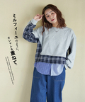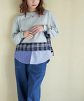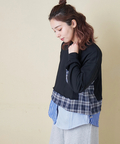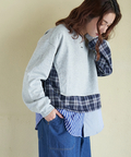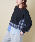 【春新作】ミニ裏毛 スウェット × チェック 切替 プルオーバー