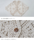 関連キーワード: カーディガン レース 綿100 Vネック 変形 ドルマン 羽織り 刺繍 花柄 ボタン 木調 ナチュラル カジュアル 春 夏 大人カジュアル エイジレス