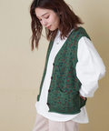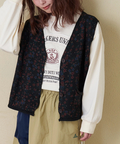 【春新作】WEB限定 evo. (エボ) 花柄 プリント Vネック ニット ベスト