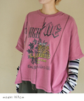 【春新作】18/-トンプキン天竺 ケミカル加工 リメイク風 切替 ヤッコ Tシャツ