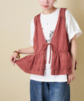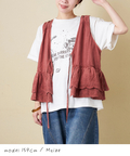 【春新作】Wornique (ウォニーク) ピグメント加工刺繍×花柄レイヤードリボンベスト