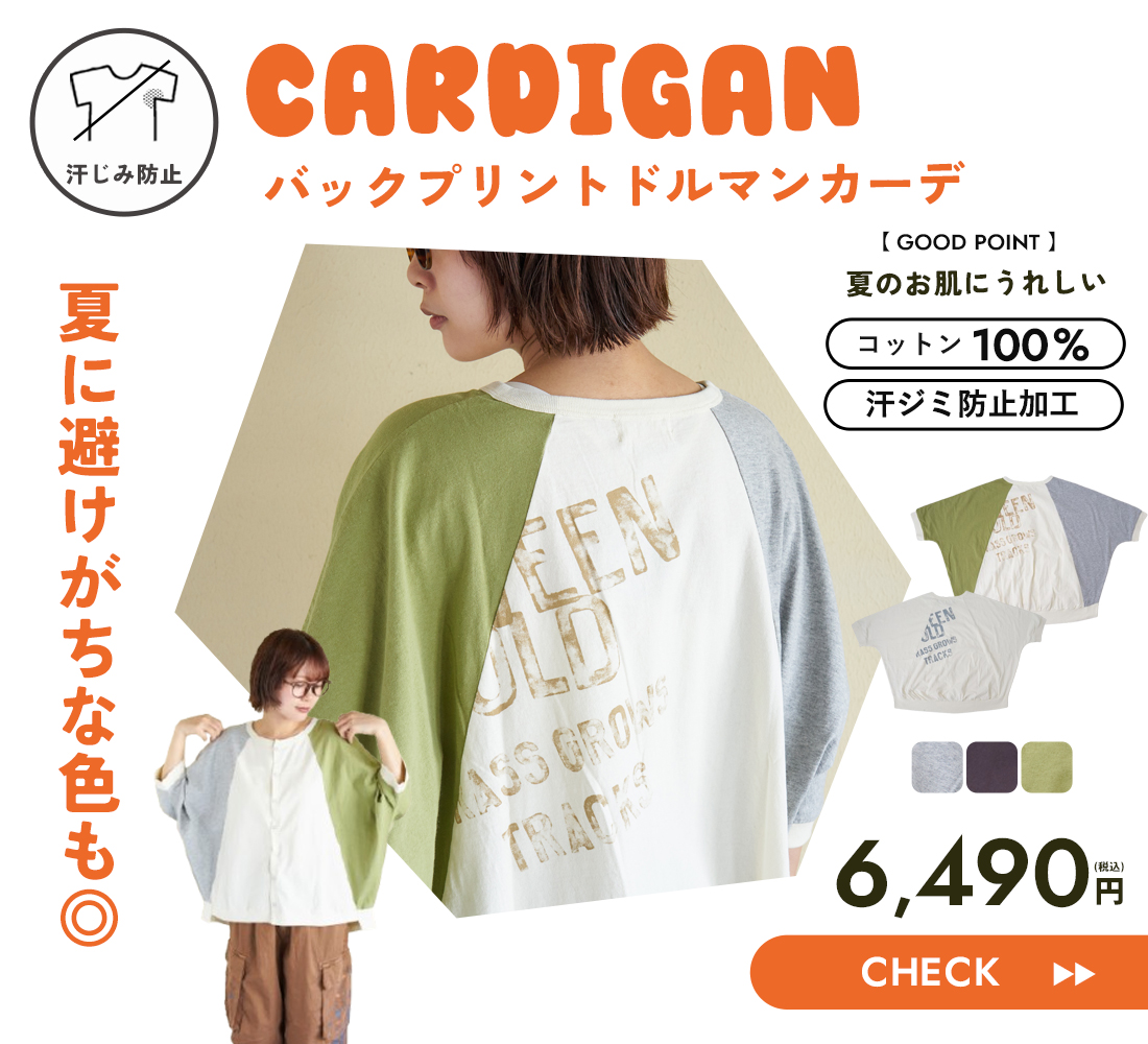 接触冷感・UVカット 天竺 7分袖 ジップ カーディガン